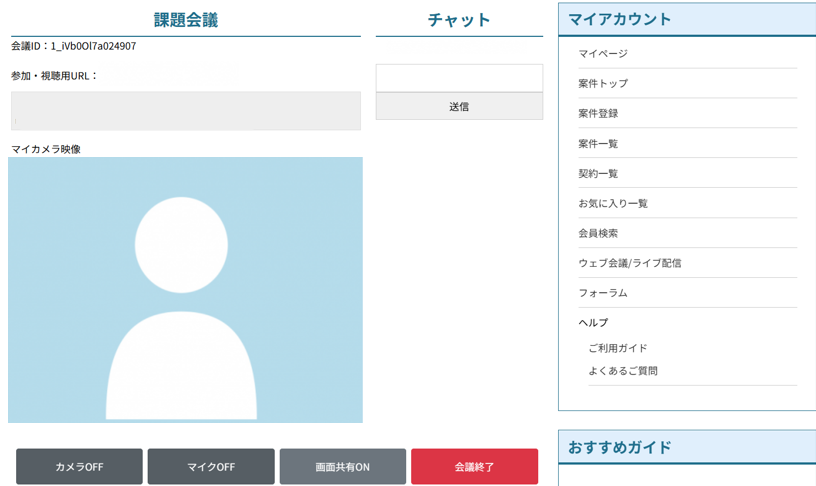 テキスト情報の共有にはチャットを、視覚情報の共有には画面共有(単独利用限定)を活用してください。